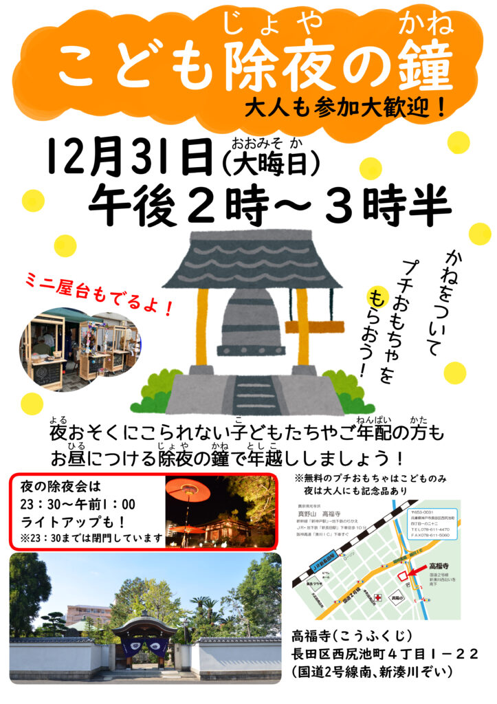 12/31(水)お昼の除夜の鐘14:00~15:30